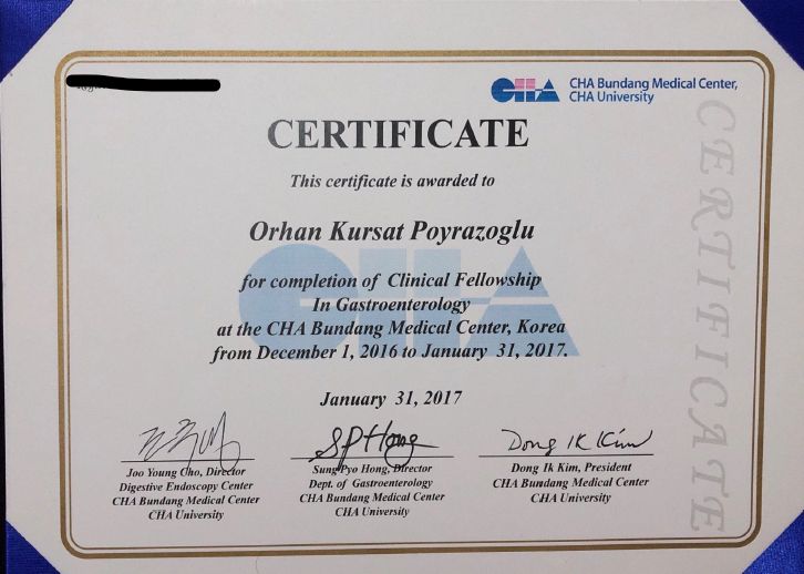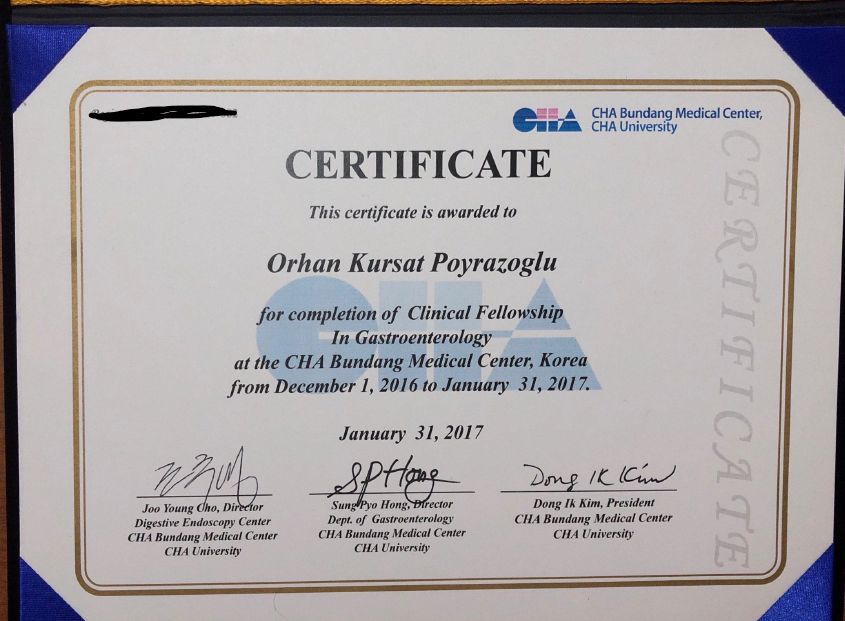 2004 yılında İç Hastalıkları Uzmanlığı, 2009 yılında Gastroenteroloji Uzmanlığı eğitimini tamamlamıştır.